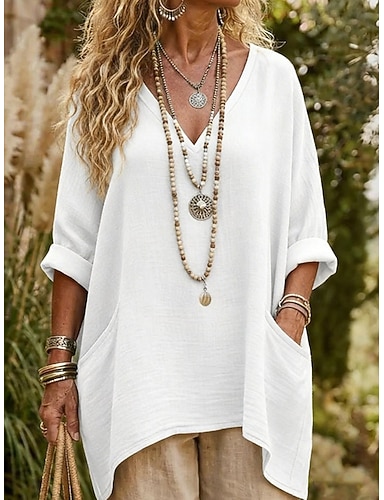 Per donna Blusa Fiocco Tinta unica Quotidiano Elegante Essenziale Manica Lunga Scollo a V Top lunghi Quotidiano Bianco Giallo Rosa Verde Estate Primavera