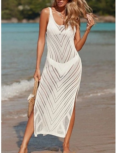 Copertura Costumi da Bagno Vacanza Spiaggia Vestito Colore Solido Senza Maniche