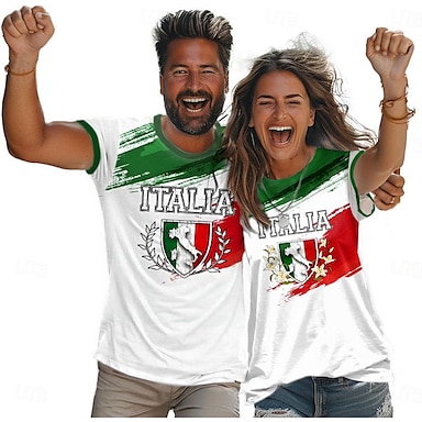 Per uomo Italia Maglietta Manica Corta maglietta Stampa 3D Girocollo Camicia All'aperto Athleisure Bianco Estate Primavera Abbigliamento S M L XL XXL XXXL