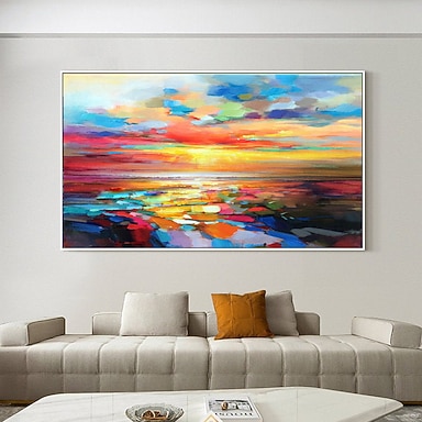 pittura a olio fatta a mano su tela wall art decor originale tramonto astratto vista mare pittura per la decorazione domestica con cornice allungata / senza cornice interna pittura