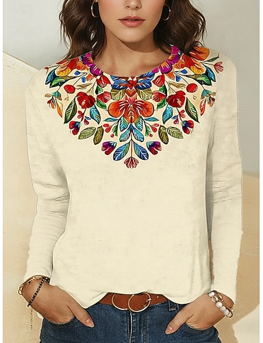 Per donna Maglietta Stampato Floreale Grafico Elegante Casual Manica Lunga Girocollo Top Regolari Quotidiano Weekend Abbigliamento da vacanza Beige Estate Primavera Autunno