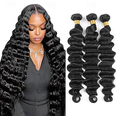 3 pacchi di capelli umani brasiliani, pacchi di capelli ondulati profondi, trama di capelli umani remy da 12 a 30 pollici, 300 g