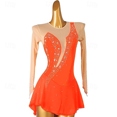 Vestito da pattinaggio artistico Per donna Da ragazza Pattinaggio sul ghiaccio Vestiti Arancione Rosso rosa Collage Scollatura posteriore Retato Elevata elasticità Addestramento Competizione Vestiti