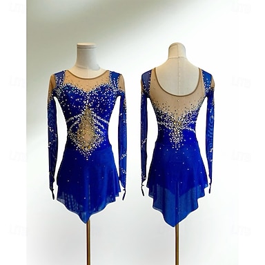 Vestito da pattinaggio artistico Per donna Da ragazza Pattinaggio sul ghiaccio Vestiti Blu Elasticizzato Addestramento Competizione Vestiti da pattinaggio sul ghiaccio Tenere al caldo Cristalli