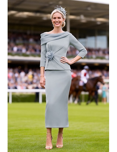 Aderente & Svasato Lunghezza al ginocchio Abito Formale Abito Derby Abito da sera Abito da cerimonia per signora Manica 3/4 Senza Spalle Elegante Vintage Formale Derby del Kentucky Tessuto