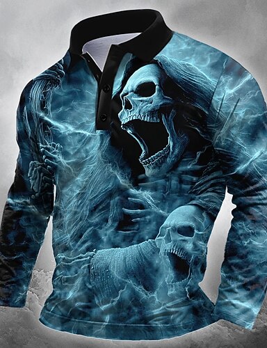 Giorno dei Morti Per uomo Teschio Polo Manica Lunga Magliette polo Bavero Casual All'aperto Streetwear Athleisure Abbigliamento quotidiano Stampa 3D Bottoni Primavera Autunno Inverno Rosso Blu Viola