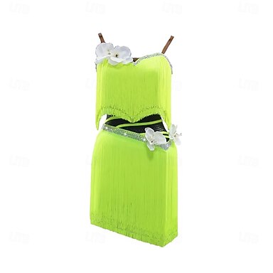 abito da ballo latino con nappa di strass, da donna, senza maniche, per rumba, salsa, chacha, costumi da ballo