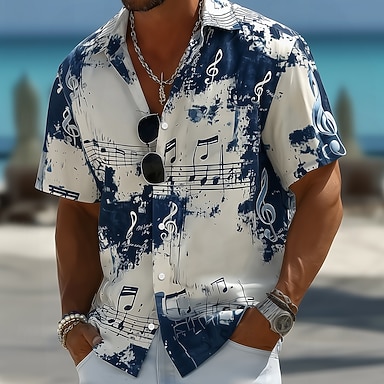 Per uomo Stampa tie dye Note Musicali Camicia Camicia con Bottoni Camicia casual Manica Corta Vintage Retrò Quotidiano Festival Musicale Primavera Autunno Collo ripiegato Stampa 3D camicie con