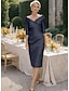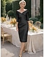 Tubino Colonna Lunghezza Tè Vestito da Festa Abito da Cocktail Abito da invitata a nozze Abito da cerimonia per signora Mezza Manica Scollo a V Elegante Vintage Lussuoso Formale Ospite di nozze Raso