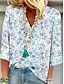 Per donna Blusa Stampato Floreale Grafico Elegante Casual Spiaggia Manica 3/4 Scollo a V Top Regolari Casuale Quotidiano Uscire Blu Bianco Giallo Verde Estate Primavera Autunno