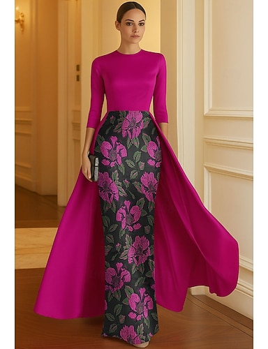Tubino Colonna Lunghezza al pavimento Perline ricamate Abito Formale Abito da madre della sposa Abito da Sera Abito da ballo con sopragonna Abito formale Elegante Brillanti Floreale Manica 3/4 Bavero
