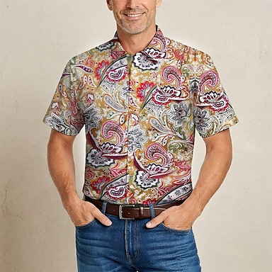 Retrò Vintage Hippie Anni '70 Camicia Maniche corte Hippie Paisley Retrò Etnico Costume Per uomo Festival Musicale Feste Abbigliamento quotidiano Adulti Camicia Primavera & Estate