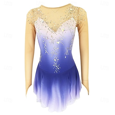 Abito da pattinaggio artistico Per donna Ragazze Pattinaggio sul ghiaccio Vestito Lilla Patchwork Rete Alta elasticità Allenamento Competizione Vestiti da pattinaggio sul ghiaccio Classico Cristallo