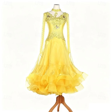Balli da sala Abito Ricamo A fantasia Cristalli / Strass Per donna Prestazioni Feste Manica lunga Retato Elastene Tulle