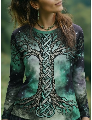 Per donna Camicia Boho Maglietta Stampato Grafico Bohemien Vintage Casual Manica Lunga Girocollo Top Regolari Quotidiano Weekend Abbigliamento da vacanza Blu Estate Primavera Autunno Inverno