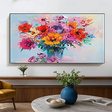 Pittura Di Fiori Su Tela Dipinta A Mano Di Grandi Dimensioni Arte Della Parete Decorazione Della Parete Boho Fiori Colorati Pittura A Olio Decorazione Della Casa Arte Moderna Pittura Di Arte Astratta