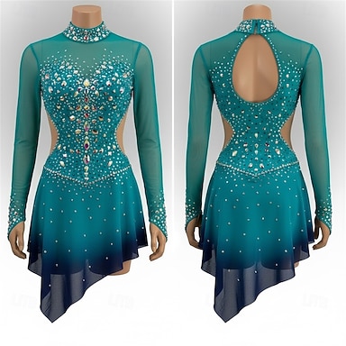 Vestito da pattinaggio artistico Per donna Da ragazza Pattinaggio sul ghiaccio Vestiti Blu+Blu chiaro Collage Scollatura posteriore Retato Elastene Elasticizzato Addestramento Da allenamento