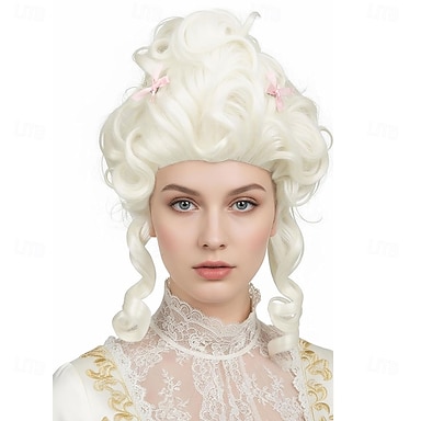 parrucca corta bionda bianca riccia da donna, parrucca coloniale da regina, parrucca per costume da festa di Halloween