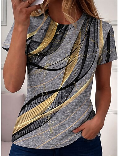 Per donna Maglietta Blocco di colore Stampato Grafico Astratto Geometria Vintage Moda Elegante Manica Corta Girocollo Top lunghi Casuale Quotidiano Weekend Cenere Verde salvia Bianco Estate Primavera