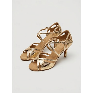 scarpe da ballo latino metalliche eleganti da donna con suola in morbida pelle scamosciata e cinturino a T | perfette per gli allenamenti e le esibizioni