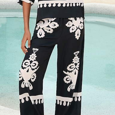 Top da donna in raso, maniche raglan, mezza manica, moderno, con revers, nero, stampa, casual, quotidiano, primavera estate autunno
