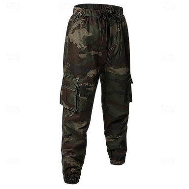 Per uomo Pantaloni Cargo Pantaloni casual Coulisse Tasca Mimetico Comodità Confortevole Lunghezza alla caviglia Quotidiano Casa All'aperto Vacanza Semplice Verde militare Nero Micro-elastico