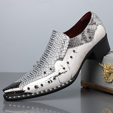 scarpe da sposa in similpelle da uomo – stampa coccodrillo bianca con design a spillo, scarpe formali alla moda per matrimoni ed eventi di lusso