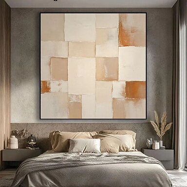 tela testurizzata minimalista 3D beige fatta a mano, pittura ad olio astratta a blocchi beige e bianchi, arte murale astratta arancione, decorazione murale moderna neutra wabi sabi