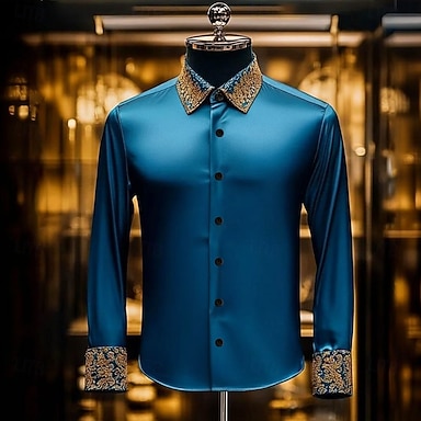 Martedì grasso Per uomo Carnevale Perline Maschera con piume Camicia Camicia in raso Camicia elegante Manica Lunga Moda Casual Feste Ferie Estate Primavera Collo ripiegato Stampa 3D Camicie con