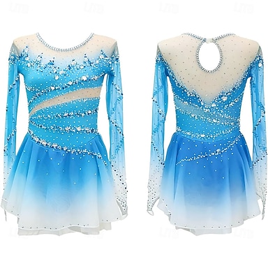 Vestito da pattinaggio artistico Per donna Da ragazza Pattinaggio sul ghiaccio Vestiti Blu Reale Foro per pollice tintura sfumata Elevata elasticità Professionale Competizione Vestiti da pattinaggio