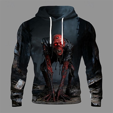 Per uomo Zombi 3D Felpa con Cappuccio Felpa Punk Esagerato Gotico Casual Manica Lunga Girocollo Con Cappuccio Club Abbigliamento casual alla moda Grigio porpora Blu Verde Cachi Coulisse Autunno