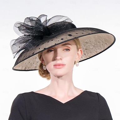 Fascinatori Cappelli Copricapo Organza Poliamide Cappello a secchiello Cappello di paglia Cappello da sole Vacanza informale Melbourne Cup Cocktail Royal Ascot Con copricapo in piuma applicato