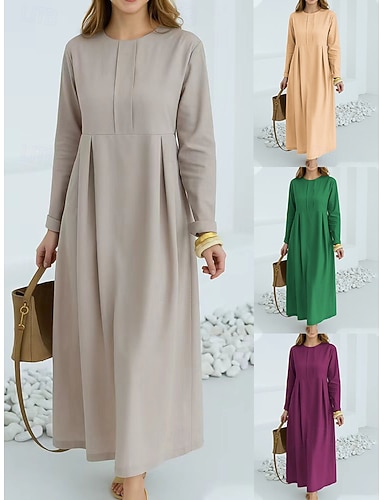 Per donna Abito lungo maxi Finto cotone e lino Abito in lino Vestito Casual Abito in cotone Moda Moderno Quotidiano Weekend Vestibilità regolare Semplice Manica Lunga Girocollo Giallo Viola Verde
