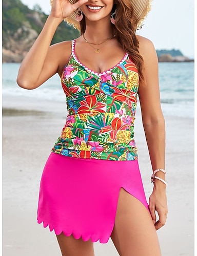 Per donna Costumi da bagno Tankini Due pezzi Gonna Costume da bagno Controllo della Pancia Vita alta Snello Senza schiena Vacanza Abbigliamento da Spiaggia Floreale Leopardo Scollo a V Senza Maniche