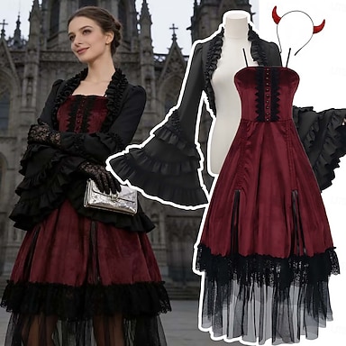 Retrò Vintage Punk & Gotico Medievale Vestito Mascherata Ragazza gotica Pizzo Tinta unita Costume Per donna Fantasia Halloween Carnevale Mascherata Festa / Sera Festival Adulti Vestito