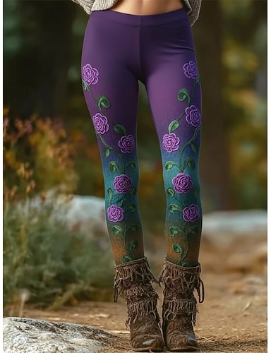 Per donna Leggings Leggings comodi Vacanza Casual Lunghezza intera Vita Alta Floreale Grafico Stampa Comodità Confortevole Alta elasticità Casuale Quotidiano Vacanza Verde scuro Viola Verde Verde