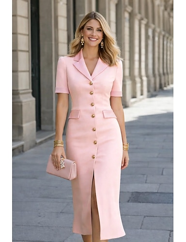 Per donna Abito blazer Abito da smoking Sirena Tromba Affari Ospite di nozze Semi-Formale Raso Crepe Elasticizzato Elegante Formale Manica Corta Midi Bavero a lancia Monopetto