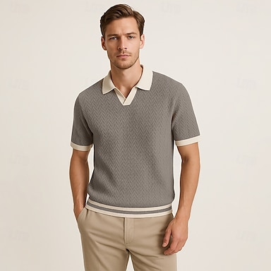 Per uomo Polo Affari Casuale Collo ripiegato Manica Corta Blocco di colori Jacquard Scollo a V Morbido Estate Primavera Autunno Vestibilità regolare Rosso violaceo Nero Cachi Polo