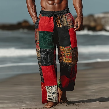 Per uomo Blocco di colori Patchwork Etnico Pantaloni Pantaloni casual Pantaloni Larghi Misura del girovita medio Vintage Retrò All'aperto Vacanza Coulisse elastica in vita Pantaloni tipo lino con