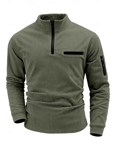 Per uomo Camicia di Velluto a Coste Polo con zip Casuale Sport all'Aperto Colletto Mao Zip a un quarto Manica Lunga Moda Essenziale Semplice Zip a un quarto Caldo Primavera & Autunno Vestibilit