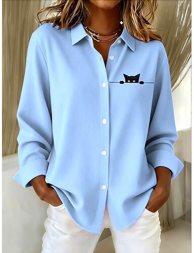 Per donna Camicie di cotone e lino Finto cotone e lino Stampato Farfalla Essenziale Casual Manica Lunga Colletto a Camicia Top Regolari Quotidiano Bianco Rosa Blu marino Viola Verde Estate Autunno