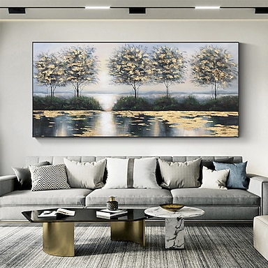 Pittura A Olio Fatta A Mano Su Tela Decorazione Della Parete Di Arte Foglia D'Oro Foresta E Laghi Pittura Astratta Di Paesaggio Per La Decorazione Domestica Pittura Arrotolata Senza Cornice Non