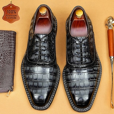 Scarpe Oxford da uomo di alta qualità in vera pelle nera con stampa coccodrillo, classiche scarpe eleganti stringate formali per sposo, uomo d'affari, matrimoni, banchetti e occasioni speciali.