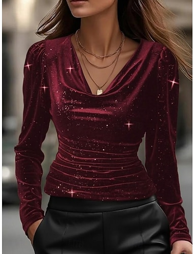 Per donna Maglietta Patchwork Tinta unica Semplice Elegante Vintage Moda Manica Lunga Scollo a V Top Regolari Quotidiano Uscire Weekend Argento Rosa Vino Rosso Blu Reale Autunno Inverno
