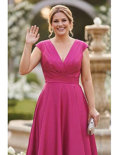 Linea ad A Lunghezza Tè Vestito da Festa Abito da Cocktail Abito Derby Abito da sposa Elegante Senza Maniche Girocollo Formale Ospite di nozze Raso con Tinta unita