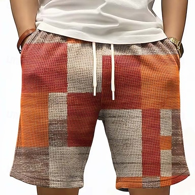 Per uomo Geometrico Blocco di colori Patchwork Pantaloncini Waffle Pantaloncini da tuta Pantaloncini casual Misura del girovita medio Moda Casual Vacanza Jogging Allenamento Testurizzato Coulisse