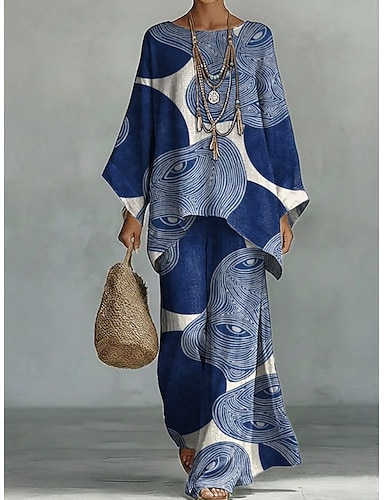 Per donna Set di Pantaloni Manica Lunga Girocollo Floreale Grafico Geometrico Stampato Moda Streetwear Casuale Quotidiano All'aperto Blu Verde Estate Vestibilità comoda