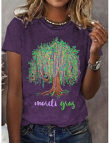 Carnevale Martedì grasso Per donna Maglietta Stampato Grafico Vintage Moda Elegante Manica Corta Girocollo Top Regolari Quotidiano Verde chiaro Viola Verde Estate Primavera