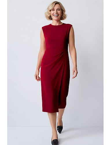 Per donna Abito da smoking Guaina Affari Ufficio Lavoro Tessuto Elegante Semplice Senza Maniche Lunghezza Tè Girocollo Cerniera