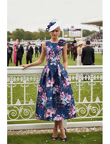 Linea ad A Lunghezza alla caviglia Abiti da Cocktail Abiti da festa Elegante Senza Maniche Girocollo Matrimonio Formale Tasca Raso con Stampa floreale Tasca